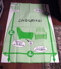 で、こうしたマッサージチェアーの場合、お店で見る印象より、実際に家に置いた時、大きく感じると思うのですが、それを調べるために、Sofaの実物大設置スペースを計れる型紙が配られてました。