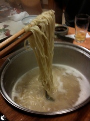 この後、残ったダシ汁に自家製のラーメンを入れて食べるのですが、この塩ラーメンもかなり美味いのです。