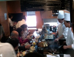 2階に上がると、鉄板の上で、4人のコックが忙しそうにお肉を焼いています。