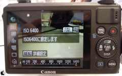 ISO感度は、PowerShot S95の場合、通常時ISO80〜3200、250万画素固定のローライト時ISO320〜ISO12800でしたが、PowerShot S100の場合、ISO80〜6400が利用できます。