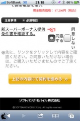 iPhoneのSafariからも予約申込が可能ですが、申込手順の中で「新スーパーボーナス提供条件を確認する」のテキストリンクを1回押さないと、ボタンが押せないといった箇所が2ヶ所ほどありますので注意が必要です。