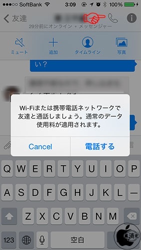 友達とのメッセージスレッドを開始し、右上にある電話アイコンをタップすると電話をかけることが出来ます。