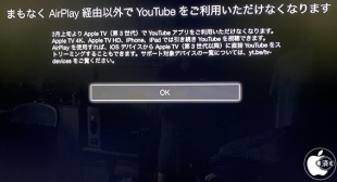 2021年02月04日(木) etc / AppleTV App#Google#AppleTV#YouTube Google、2021年3月上旬で、Apple TV (第 3 世代)向けのサービスを終了 ※本サイトは、アフィリエイト広告および広告による収益を得て運営しています。購入により売上の一部が本サイトに還元されることがあります。 Googleが、2021年3月上旬で、Apple TV (第 3 世代)向けのサービスを終了すると案内しています。 3月上旬以降に、Apple TV (第 3 世代)でYouTubeを視聴するには、iPhone、iPadからAirPlayを利用する必要があります。 既に、Apple TV (第 3 世代)では、Vimeo、hulu、バンダイチャンネル、CBS Sports、NFL Gameのサービス提供は終了しています。