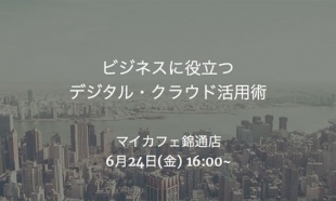 2016年6月24日に名古屋にあるマイカフェ錦通店にて開催されるイベント「ビジネスに役立つデジタル・クラウドツール活用術」に参加します。