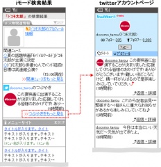 NTTドコモ側は、検索結果にリアルタイムなツイートやツイッターコンテンツ表示を、iモードケータイ向けに2011年夏以降、スマートフォン向けに2011年冬以降から提供すると説明しています。