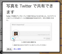 全てのユーザーが同じTwitter.com を利用し、最新の機能にアクセス可能になったことから、6月にPhotobucketとパートナー契約を結び、バックエンドでこれらの写真をホストすることに協力を得た事により、ツイートの中に写真を投稿出来る機能を順次提供すると発表していた「写真投稿機能」が、一般にも提供開始されたようです。