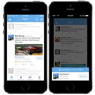 2014年07月01日(火) etc / Twitter#Twitter Twitter、タイムライン上から直接アプリインストール出来る広告の提供を開始 ※本サイトは、アフィリエイト広告および広告による収益を得て運営しています。購入により売上の一部が本サイトに還元されることがあります。 Twitterが、タイムライン上から直接アプリインストール出来る広告の提供を開始すると発表しています。 タイムライン上に、アプリを推奨するアプリケーションカードと、App StoreまたはGoogle Playに転送することなく、直接ダウンロードを開始することが可能です。 このアプリインストール広告は、一部のパートナーで実験が繰り返されており、ようやく正式サービスとなったようです。 広告料金は、アプリクリック単価型の「CPAC」形式で提供され、App StoreまたはGoogle Playへからインストールが行われると課金されます。