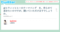 2009年07月28日(火) etc / Twitter#Twitter#広瀬香美 広瀬香美さん、Twitterのテーマソングを制作すると発表 ※本サイトは、アフィリエイト広告および広告による収益を得て運営しています。購入により売上の一部が本サイトに還元されることがあります。 Twitterをはじめた広瀬香美さんが、アカウントkohmiで、@ヒウィッヒヒーのテーマソングを制作するとつぶやいてました。 来週中に発表されるそうです。