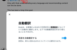 Xが、ポスト内容の翻訳機能として、これまでのGoogle翻訳からGrork翻訳へと移行しています。