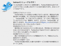 Twitterの公式ナビゲーター「twinavi」がリニューアルを行っています。