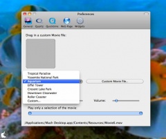 Preferencesから、QuickTimeを選択し、Choose a QuickTimeから、デスクトップに表示したい動画を選択すると、デスクトップに動画を再生表示することも出来ます。