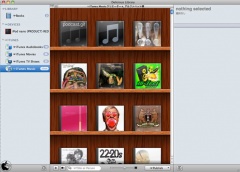 iTunesでは、オーディブック、映画、TV番組、音楽に分かれて、書棚にサムネイル画像が表示されて並びます。