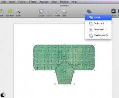 このVectorDesignerの強力な機能は、シェイプツールから図形を描き、そこにFlickrなどの写真を反映した後、グループ選択して、Boolean機能を利用すると、様々な結合や、形状切り抜きを行える事で、ある決まった形状を作成したい場合、イメージ通りに作成することが出来ます。