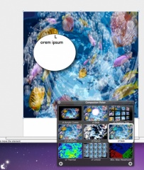 Adjustボタンをクリックすると、画像調整機能を利用することができ、Flickrボタンをクリックすると、Flickr Broserが表示され、キーワードマッチした写真を利用することも出来ます。