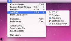 FinderメニューのLayersアイコンから、AppShot>任意アプリケーションを選択すると、選択されたアプリケーションだけのスクリーンショットを撮影することも出来るようになっています。