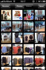 iPhone/iPad用アプリを起動すると、写真ライブラリー内に保存された写真や動画が表示されるので、転送したい写真をタップして選択します。