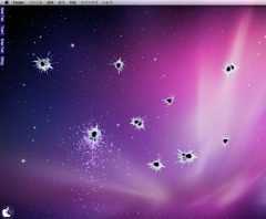 BlingタブにあるBullet Holesをクリックして起動し、デスクトップをマウスでクリックすると、ガラスが割れたようなサウンドと一緒にデスクトップに銃で撃たれたガラスの穴が表示されます。