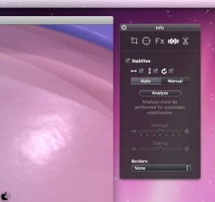 iMovie '11にも手ブレ補正解析機能がありますが、あまり激しい手ブレは諦めてしまいますが、Elastyの場合は、フレームが45度になるぐらいの手ブレでもがんばって解析してくれます。
