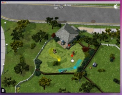 3人の子供が持つ芝刈り機2台と芝刈り車をマウスで移動する軌跡で誘導し、時間内に庭の芝を決められたレベルまで刈り込んでいきます。