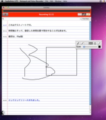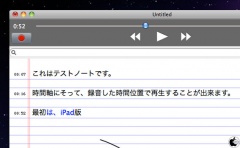 iPhone/iPad用アプリ「AudioNote Lite - Notepad and Voice Recorder」のMac版で、Microsoft OneNote 2010や、Microsoft Word for Mac 2011のノートレイアウトモードのように、メモと録音とが時間軸で連動するアプリです。