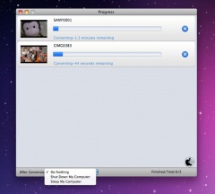 変換作業は、複数ファイル同時実行され、変換後に、Macを終了させたり、スリープモードにさせたりすることも出来ます。