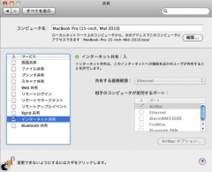もしWiFi環境が無い場合は、Mac OS X Snow Leopardのシステム環境設定>共有にあるインターネット共有にチェックを入れ、iPhone/iPod touchのWiFi接続先として、Macのコンピュータ名を選択することで代用して下さい。