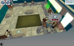 お店にきたお客の注文が吹出しに表示されるので、そのアイテムを、店内を探しまわって見つけ、それを取ってお客の元に運ぶという作業を行います。