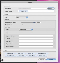 スナップした画像を書き出し時は、フォーマットの選択、圧縮率、EXIF情報、IPTC情報などの設定を行う事が出来るようになっています。