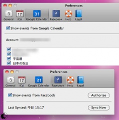 メニューバーに、iCal、Googleカレンダー、Facebookイベントを表示出来るアプリ「CalendarBar」を試す