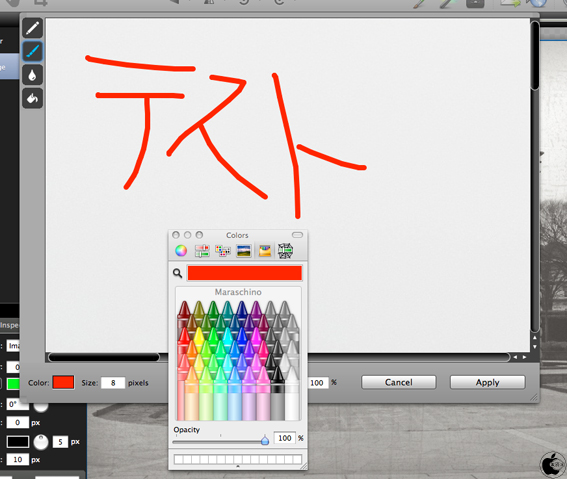 手描きしたデータは、Applyボタンをクリックすると、写真データー上に配置されます。