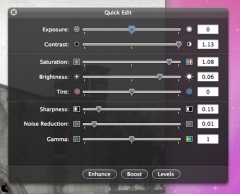 四角い黒のQuick Editアイコンをクリックすると、明るさ、コントラスト、彩度、シャープ編集などを行う事が出来ます。