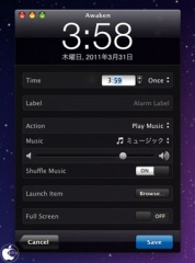 iPhone/iPad用アプリ「Awaken」のMac版で、iTunesの楽曲をアラームとして再生することが出来ます。