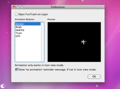 2011年04月15日(金) etc / Mac App Store#FunTrash#Mac_App_Store ゴミ箱にファイルを移動する時に、面白いアニメーション表示がされるMac用ゴミ箱アプリ「FunTrash」を試す ※本サイトは、アフィリエイト広告および広告による収益を得て運営しています。購入により売上の一部が本サイトに還元されることがあります。 FunTrash Cafevilleが、Mac用ゴミ箱アプリ「FunTrash」を、Mac App Storeにて販売を開始していたので試してみました。 ゴミ箱にファイルを移動する時に、面白いアニメーション再生表示がされるMac用ゴミ箱アプリです。 ゴミ箱に移動したいファイルやフォルダを選択して「コマンド+delete」キーを押すと、UFOが飛んできて、ゴミ箱に移動したり、爆撃が爆弾を投下してゴミ箱に移動したりしてくれます。 設定では、表示されるアニメーションを切り替える事が出来るようになっています。 まったく、役に立たないユーティイティですが、エンターテイメントなデスクトップに出来て面白いと思います。 ↓の評価ボタンを押してランキングをチェック!