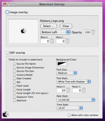 Watermark項目をクリックすると、指定画像ファイルの埋め込みや、EXIF項目の編集などを行えるようになっています。