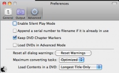 設定では、無音再生モードの実行、同じファイル名の場合に連番追加、DVDチャプターを保持したまま変換、全てのタイトルまたは収録時間が一番長いタイトルのみを選択などが設定出来ます。