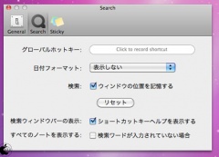 設定では、ホットキー割当て、日付フォーマット設定、検索ウィンドウの位置記憶などを行う事が出来ます。