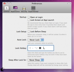メニューバーにある鍵アイコンから設定を開き、Generalで、起動時にLock Screen 2を自動起動させたり、画面ロック呼び出しのショートカットキーを変更したり出来ます。