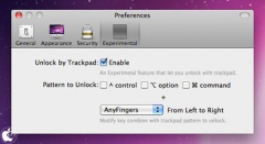 Experimentalでは、キーボードではなく、トラックパッドを使って、スライドロック解除することも出来ます。