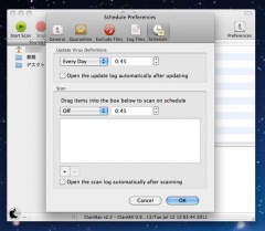 スケジュールは、ClamXav実行のスケジュール設定を行うことが出来ます。