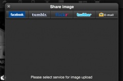 編集作業が終了した写真は、保存以外にShareをタップして、Facebook、tumblr、flickr、Twitterへの投稿や、メール添付することが出来るようになっています。