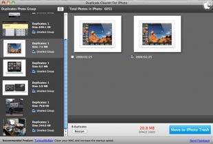 iPhotoのライブラリー内にある重複写真を検知し、削除することでドライブの空き容量を節約することが出来るアプリです。