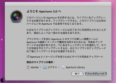 注意点として、旧Apertureの環境にAperture 3をインストールすると、旧Apertureは削除され、ライブラリーもアップグレードされるため「旧Apertureに戻れなくなります」Aperture 3 体験版をインストールした場合も同様で、使用し続けるためには購入せざる終えなくなるので注意が必要です。