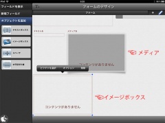 新規フィールドの「メディア」でもカメラ撮影した写真を取り込むことが出来ますが、ペンアイコンをタップして、レイアウトモードを一旦終了しなければならないため、即写向けは、オブジェクトの「イメージボックス」だと覚えておくと良いです。