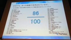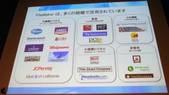 FileMakerの40%は小規模ビジネスで利用されていて、非営利組織では数千もの組織で導入されており、日本においては、日本の就職人気企業ランキング100位のうち86社で導入されていると紹介した。