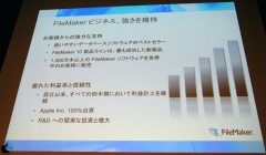 FileMaker Pro 10、Bento 3は全て年内に発売した製品で、絶えず最先端のOSプラットフォームをサポートし続けており、FileMakerはワークグループ向けにフォーカスしているため、Oracleといった大規模エンタープライズとは競合していないと説明した。