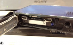 無線転送技術「TransferJet」対応カメラのため、HDMI端子とUSB端子がバッテリー装着部分にあり、通常は使用しない場所に配置されています。
