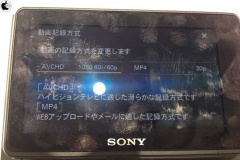 動画撮影モードは、AVCHD 60i/60p:28M PS(1,920x1,080/60p) / 24M FX / 17M FH(1,920x1,080/60i) / 9M HQ(1,440x1,080/60i)と、MP4:12M(1,440x1,080/30fps) / 6M(1,280x720/30fps) / 3M VGA(640x480/30fps)が選択出来ます。
