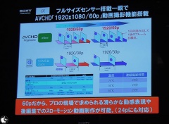 ソニーは動画撮影機能を強調していて、AVCHD「1920 1080/60p」動画撮影が可能で、20℃〜40℃でも連続撮影時間は29分を実現していると説明していました。