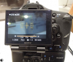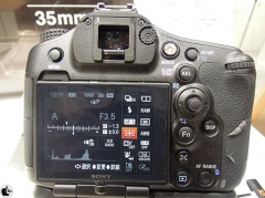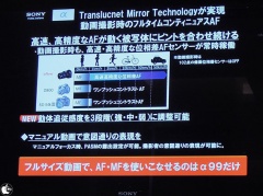 ソニーが、有効約2430万画素の35?フルサイズRGB原色フィルター付“Exmor”CMOSセンサーを搭載したレンズ交換式デジタルカメラ「α99」の製品説明会を開始し、実機展示を交えての解説が行われました。