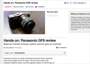 PetaPixelが、英TechRadarのサイトに、一時パナソニックの「LUMIX DMC-GF6」レビューが公開されていたと伝えています。4月9日の発表に合わせて公開される予定だったようで、現在は非表示となっています。